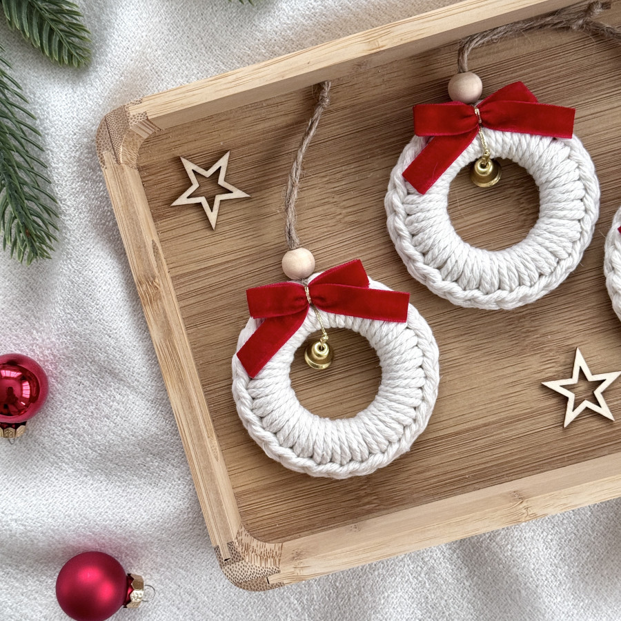 Ajoutez une touche de chaleur et de magie à votre intérieur avec ces petites couronnes de Noël en macramé !