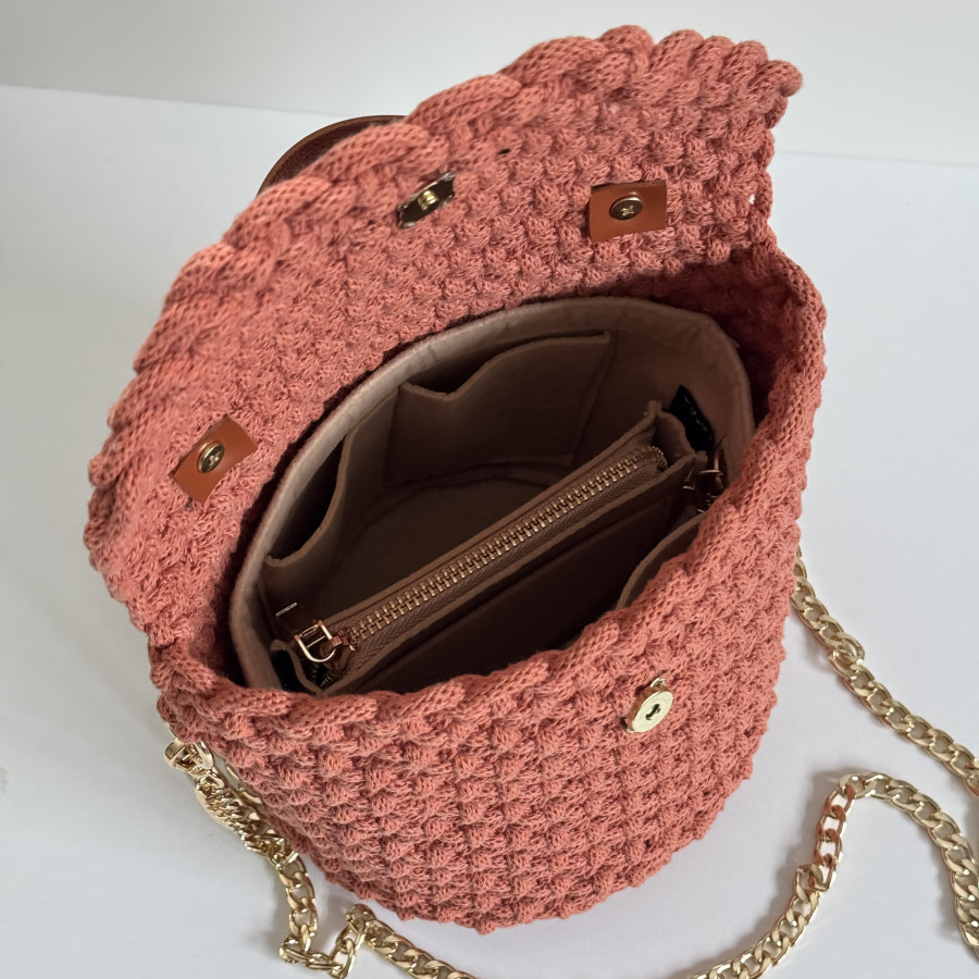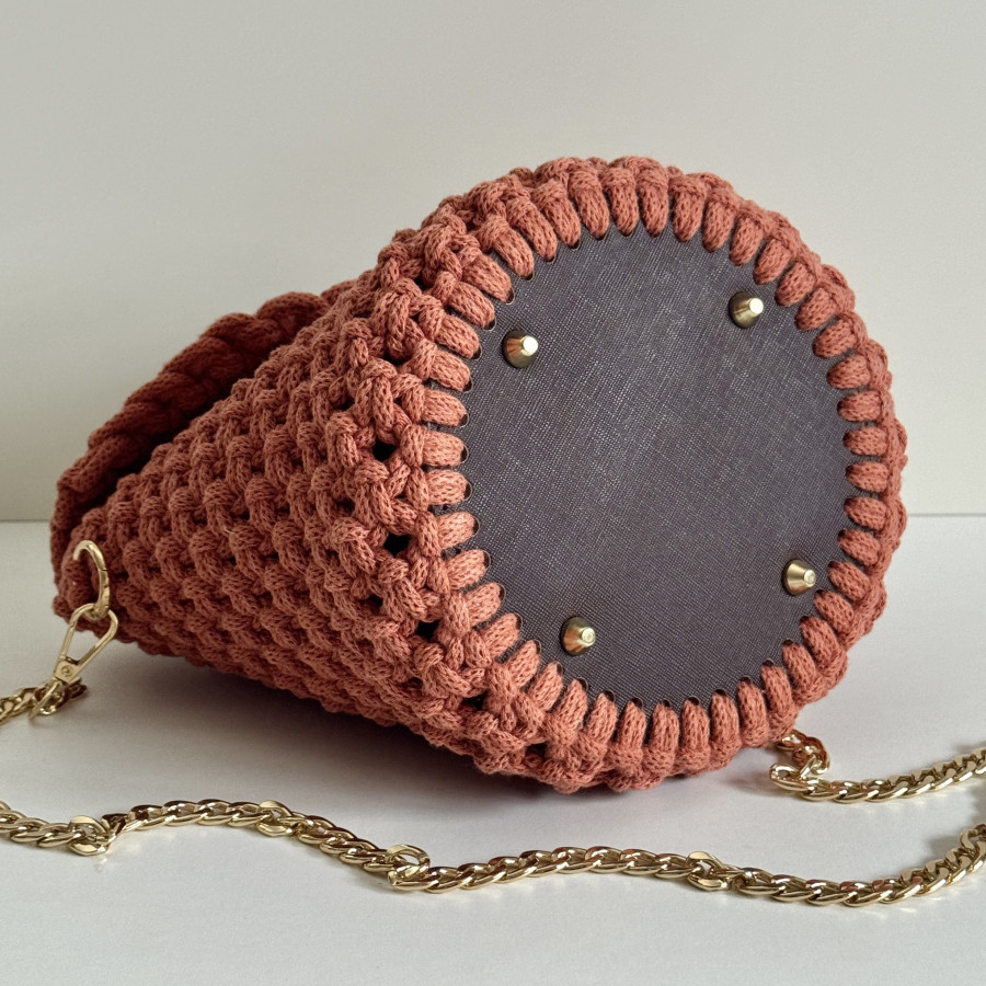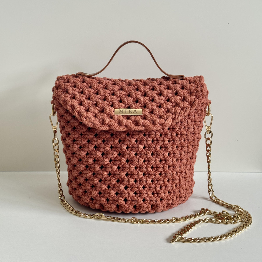 Ce sac terracotta, fait main en macramé transforme les tenues les plus simples en statement élégante.